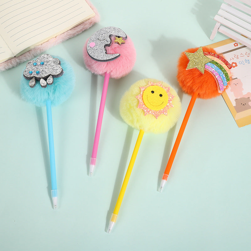 Wholesale Rainbow Moon Sun Cloud Hair Ball Pen