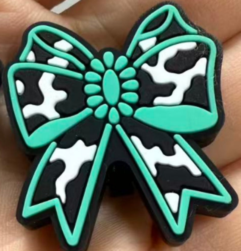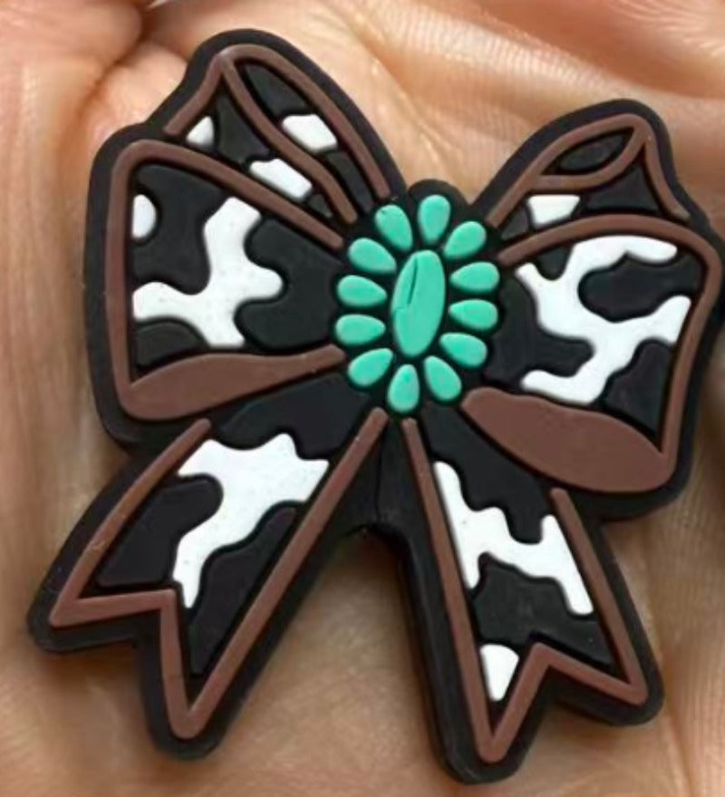 Wholesale 10pcs Cow Print Braids with Bows Silicone Beads Focal Beads