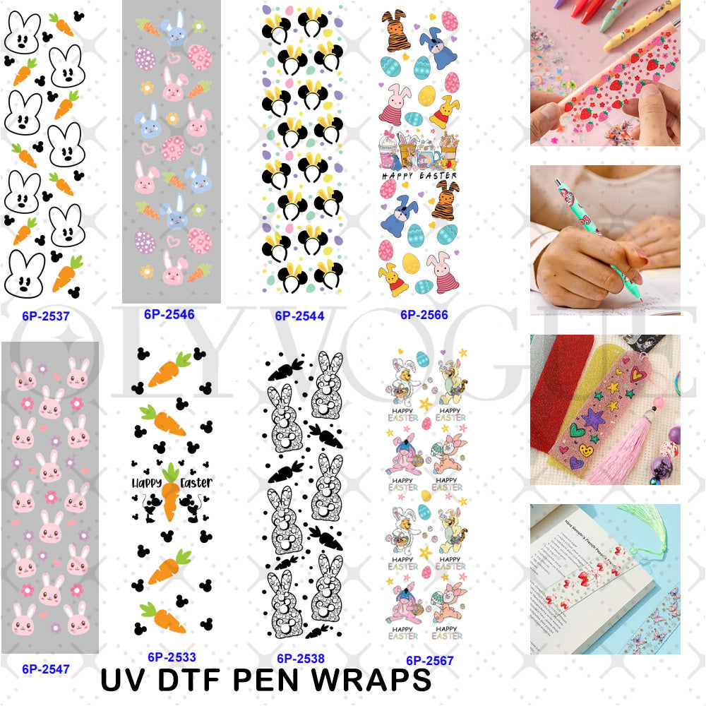 Wholesale 2/8/16pcs Easter Carrot Rabbit Cartoon Pen & Bookmark Stickers UV DTF Wraps OLY Exclusive