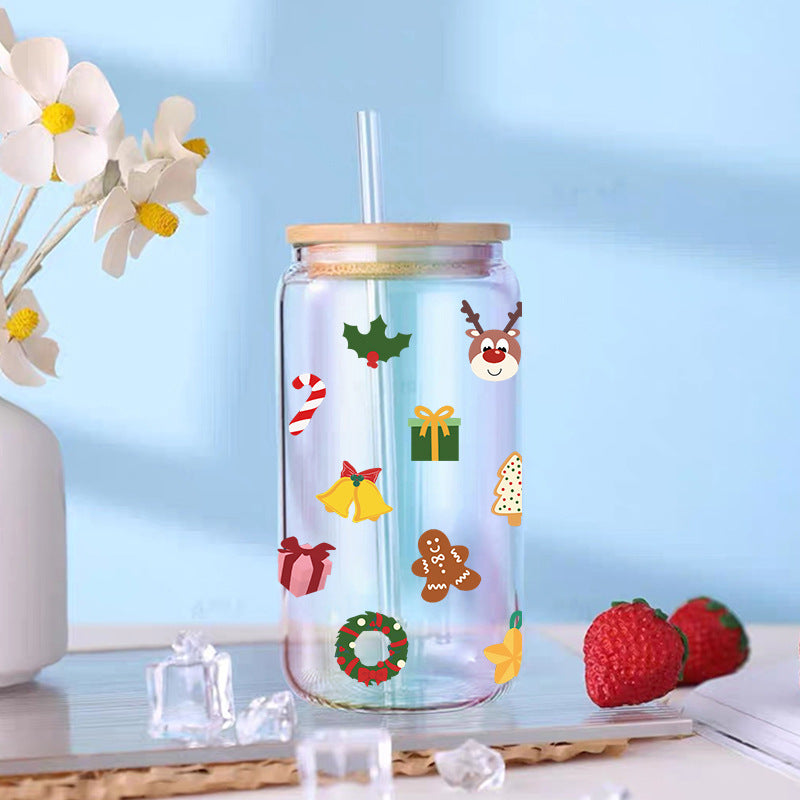 Wholesale Christmas colorful drinks 16oz Cup UV DTF Wraps