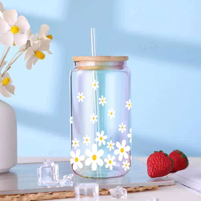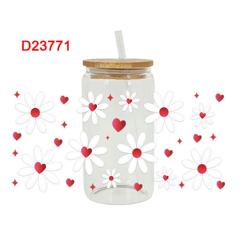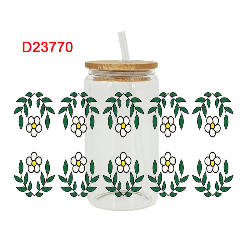 Wholesale colorful flowers 16oz Cup UV DTF Wraps