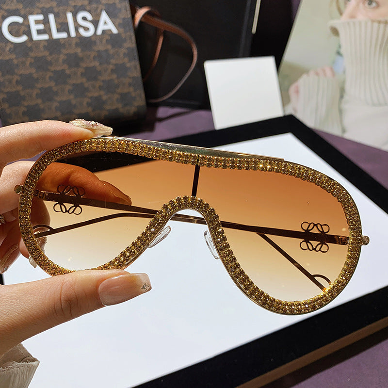 Wholesale Metal glasses sunglasses one-piece sun protection diamond-studded sunglasses for women