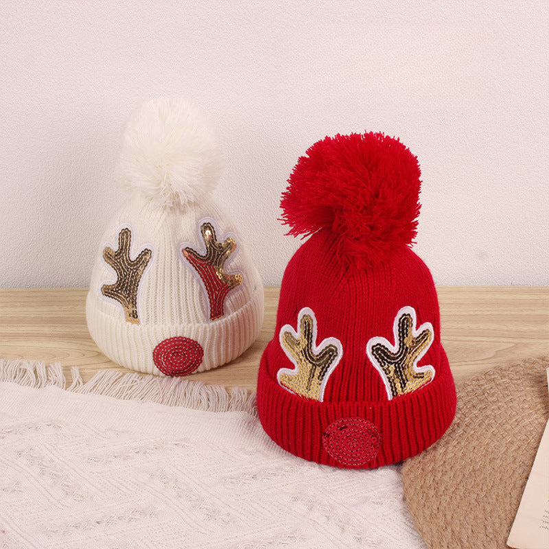 Wholesale Acrylic Cartoon Sequins Cute Christmas Antlers Kids Knitted Hat