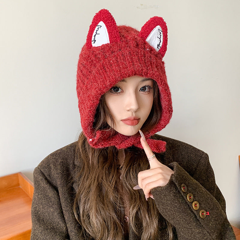 Wholesale Pointy Ear Knit Warm Ear Protector Winter Wind Chill Pullover Ski Cycling Hat