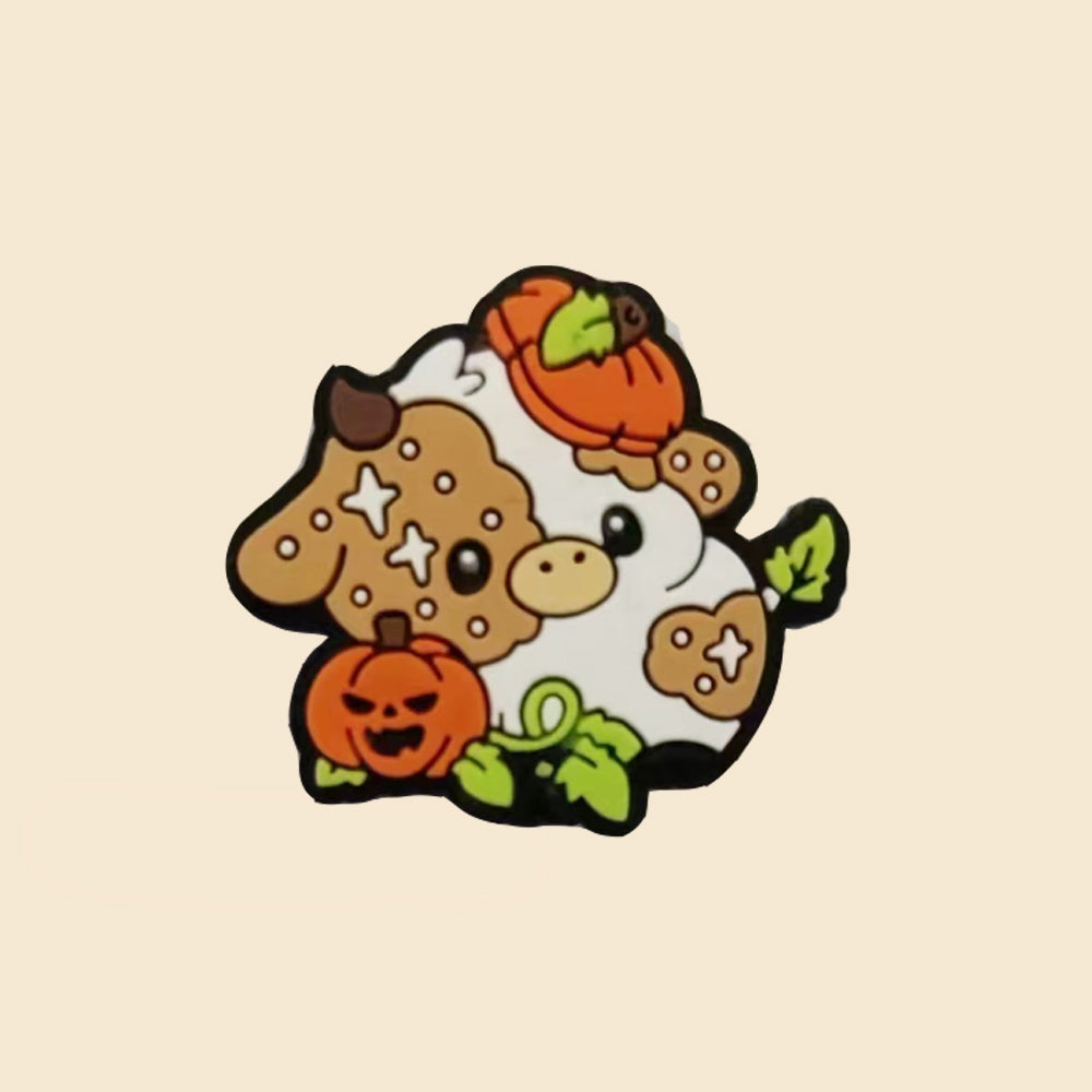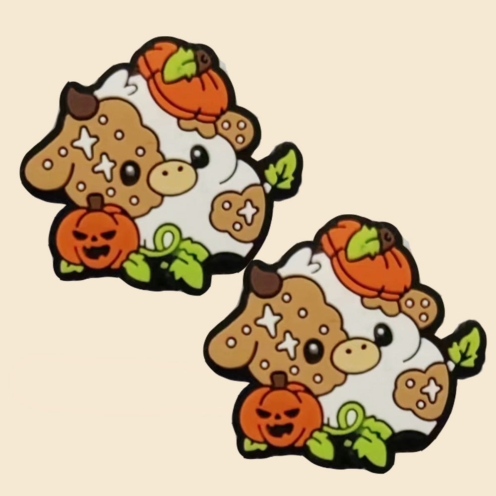 Wholesale 10pcs Cartoon Halloween Brown and White Cow Pumpkin Silicone Beads