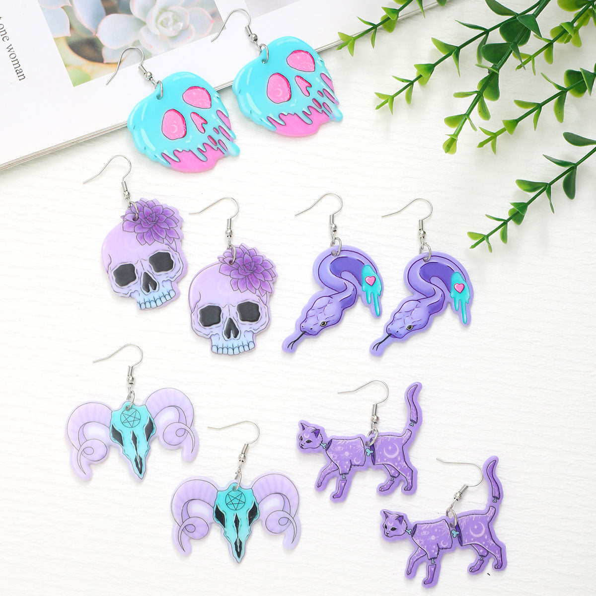 Wholesale Acrylic Devil Skeleton Color Kitten Earrings