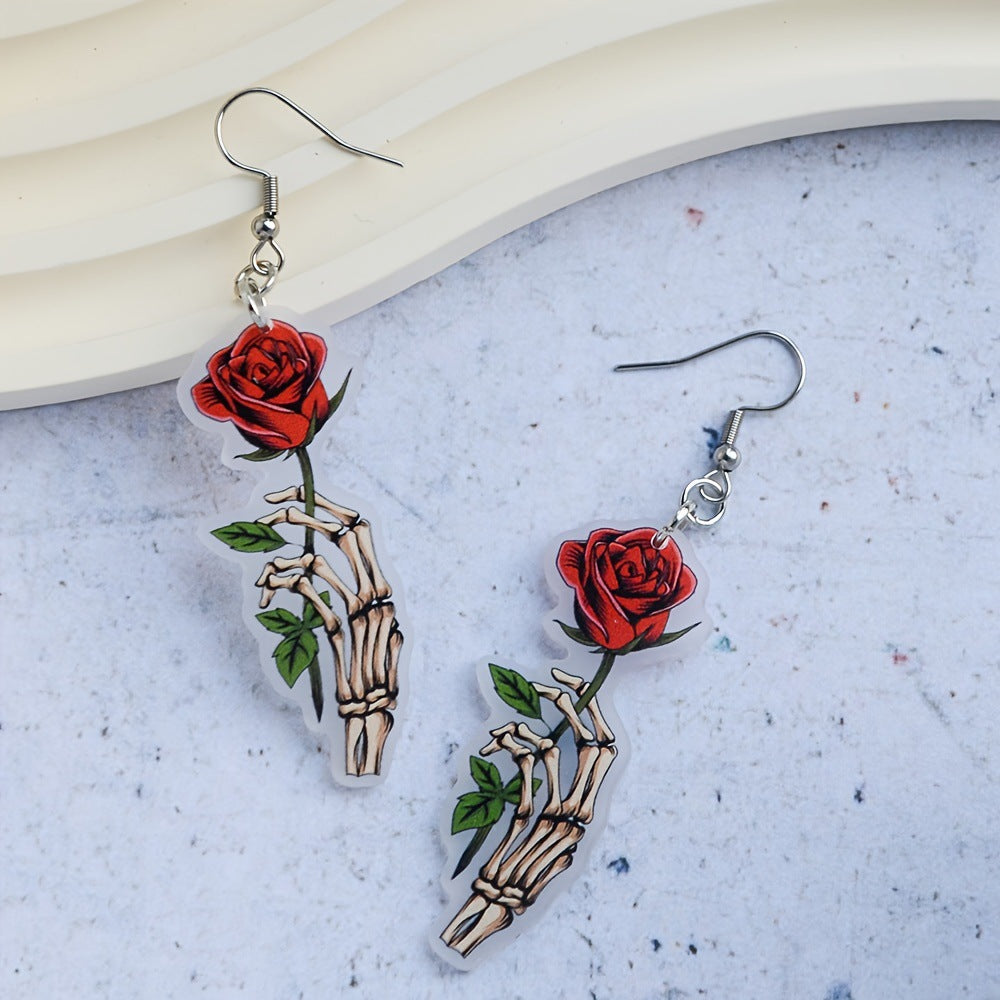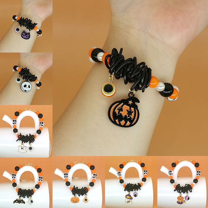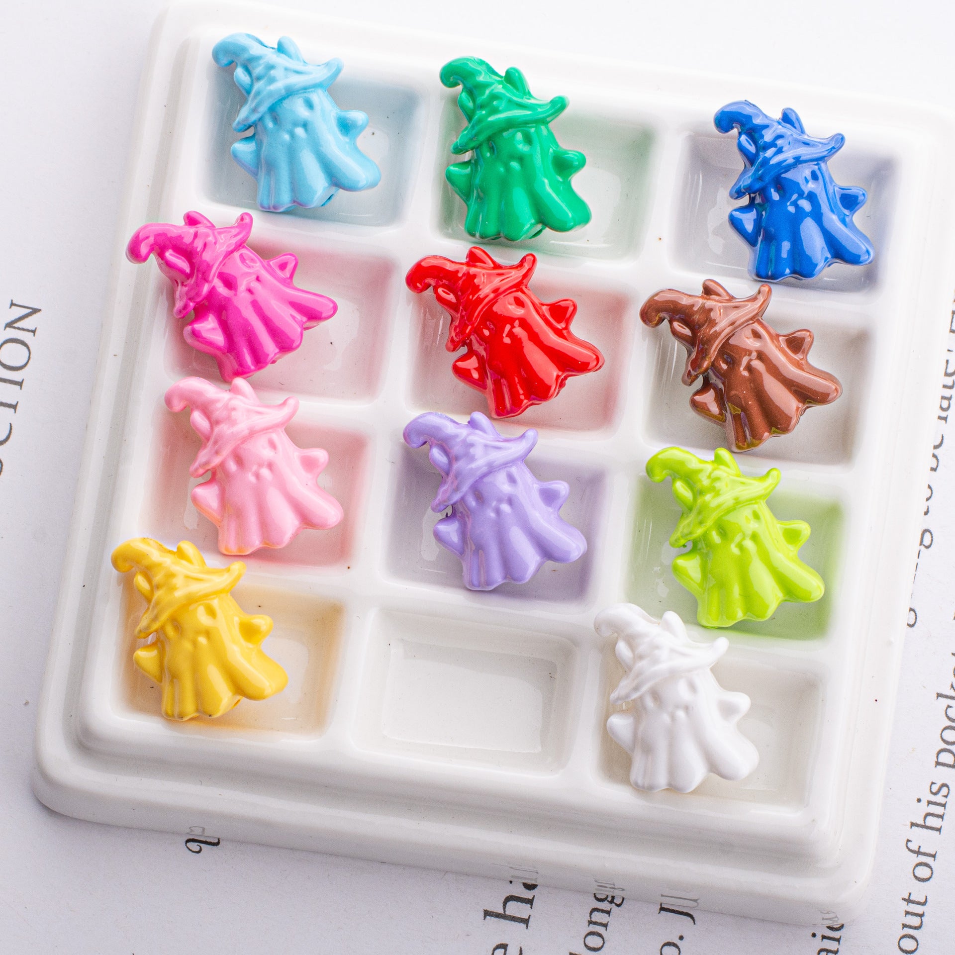 Wholesale 5pcs Halloween Painted Ghost Acrylic Straight Hole Loose Beads