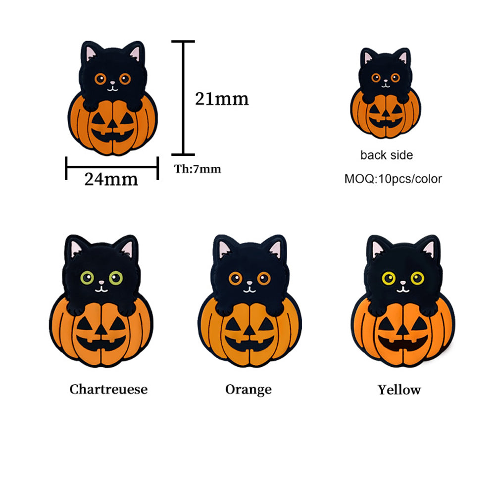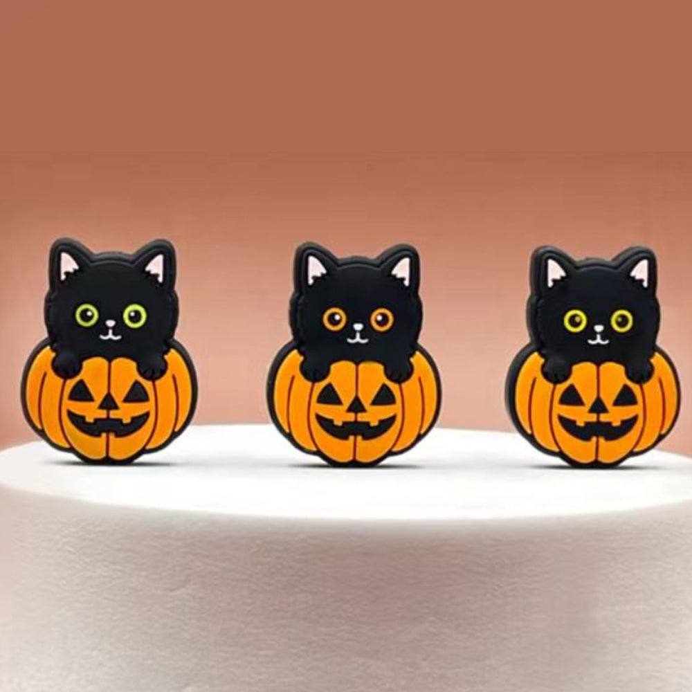 Wholesale 20pcs Cartoon Cute Halloween Pumpkin Kitten Silicone Beads