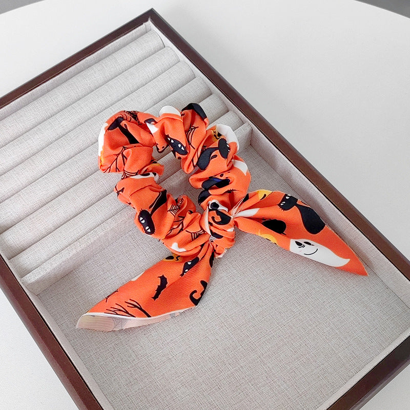 Wholesale Hair Ring Fabric Printing Pumpkin Ghost Bat Strap