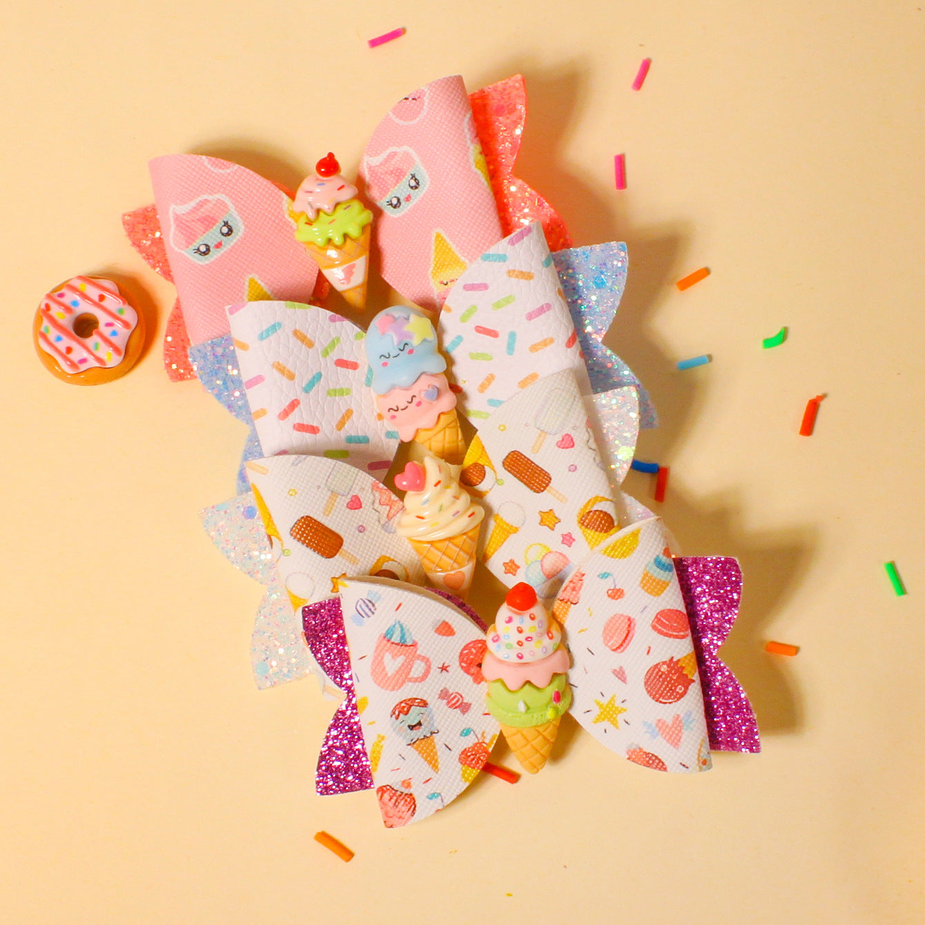 Wholesale Shiny Ice Cream Bow Double Layer Bow Girl Baby Cloth Clip Bow