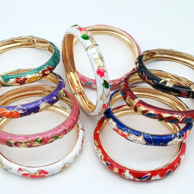 Wholesale 12pcs Cloisonne Children's and Adult's Thin and Wide Flower Bracelets