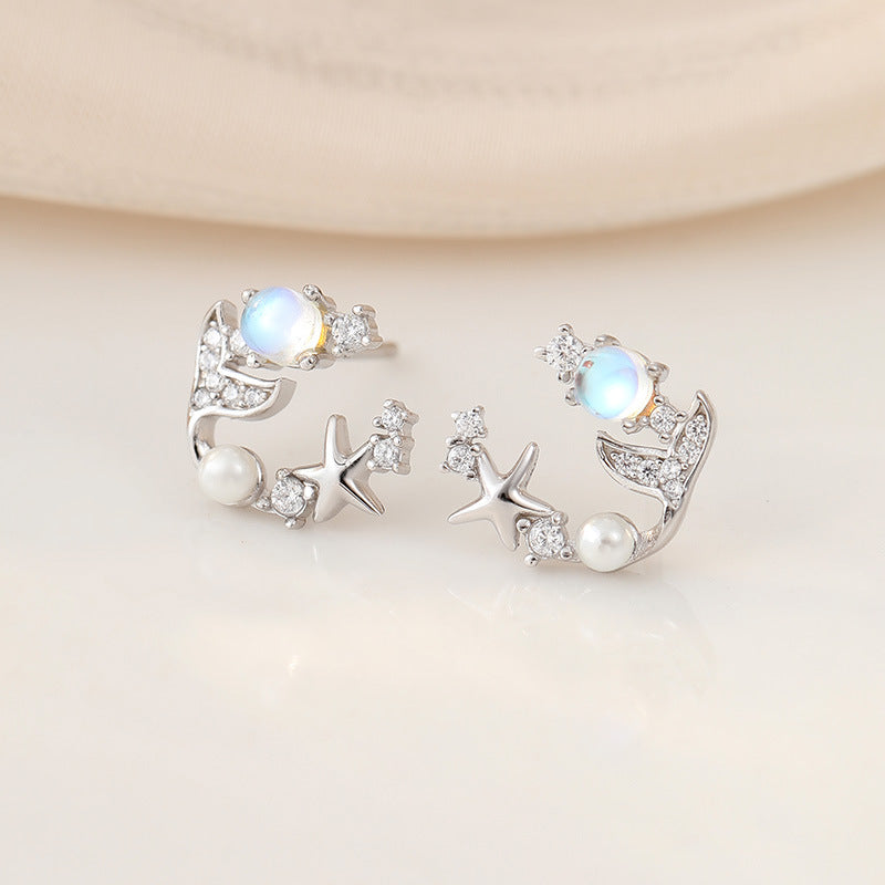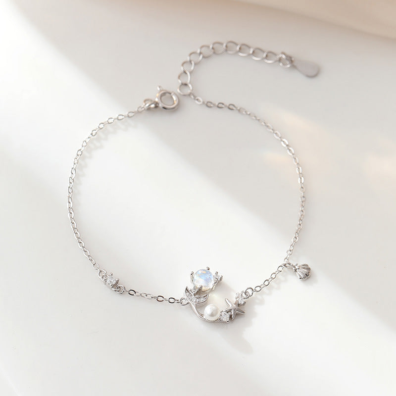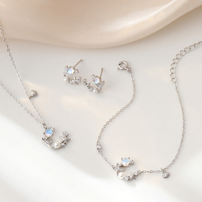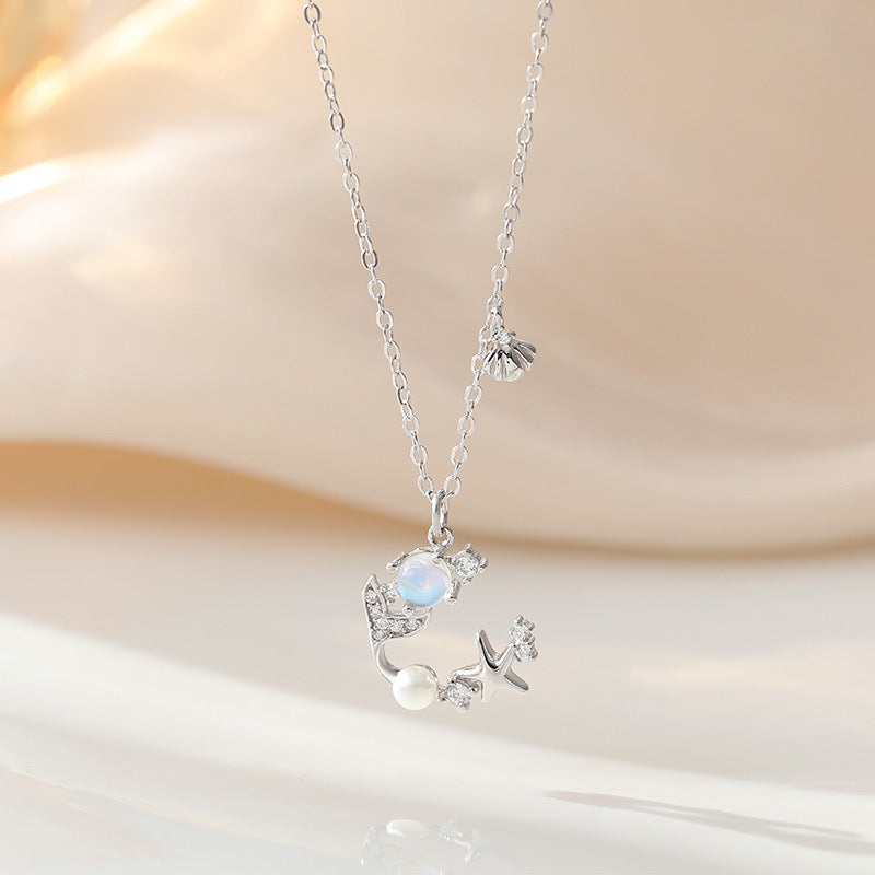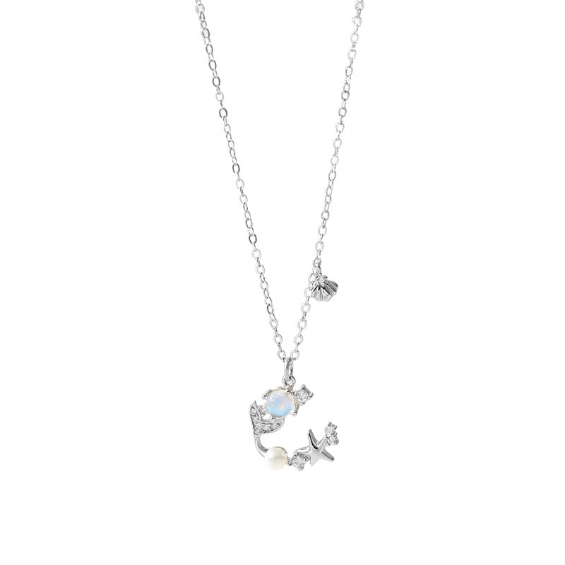 Wholesale 925 Sterling Silver Star Fishtail Moonstone Clavicle Necklace