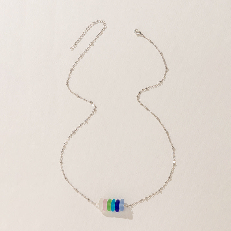 Wholesale Beautiful Colored Sea Glass Pendant Sweater Necklace
