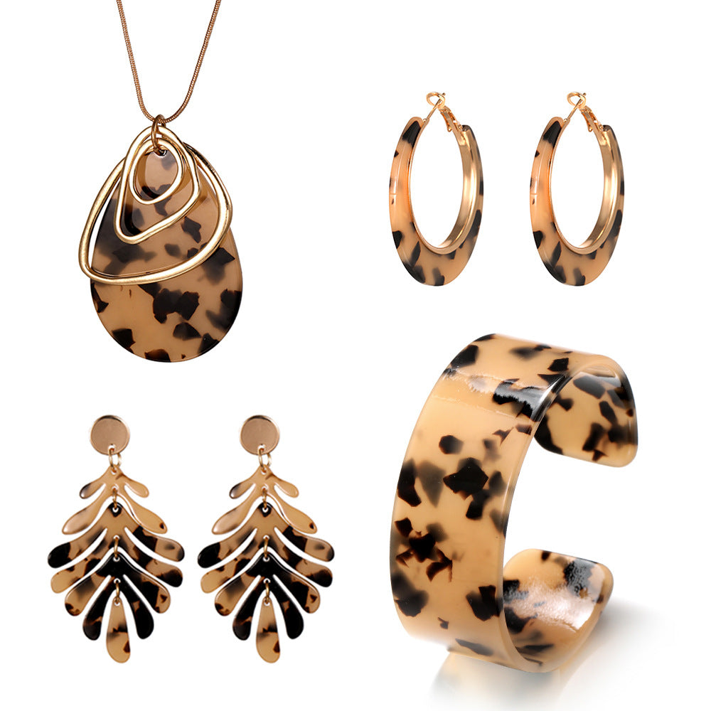 Conjunto de joyería acrílica de forma C mayorista estampado de leopardo 4 piezas pulsera