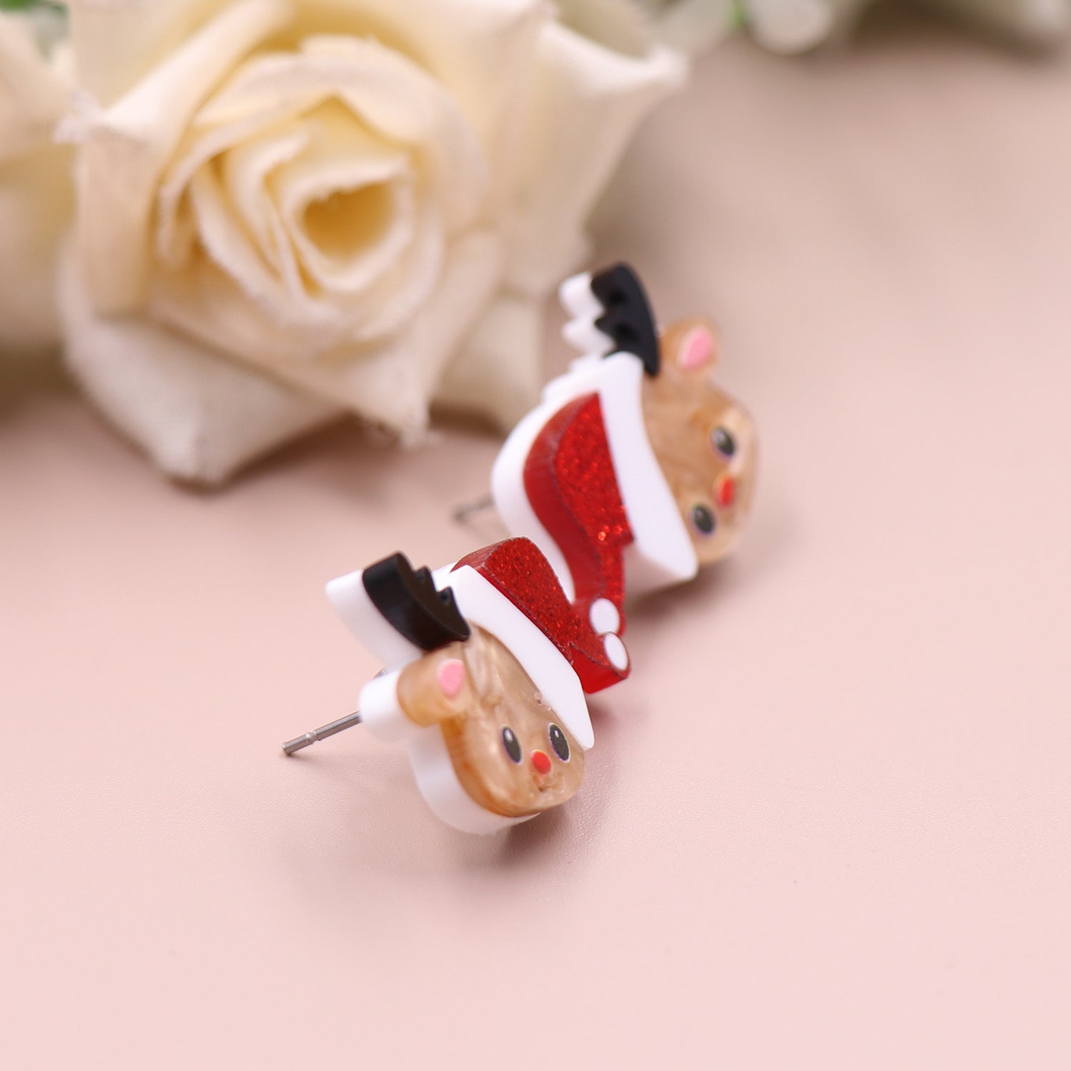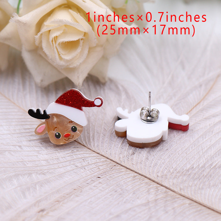 Wholesale Christmas Deer Cute Acrylic Jewelry Cartoon Stainless Steel Stud Earrings