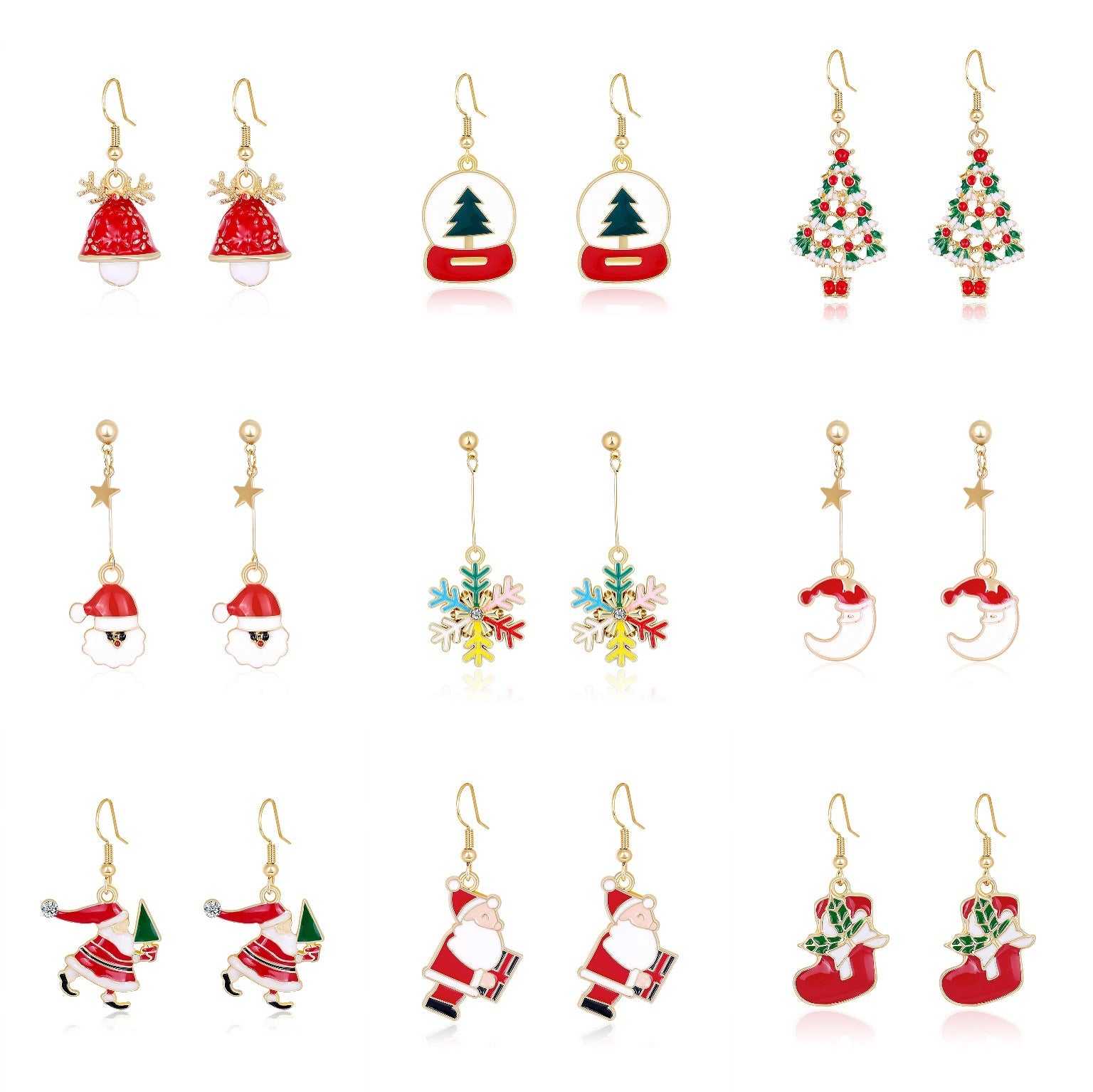 Wholesale Christmas Oil Drop Diamond Santa Claus Christmas Tree Alloy Earrings