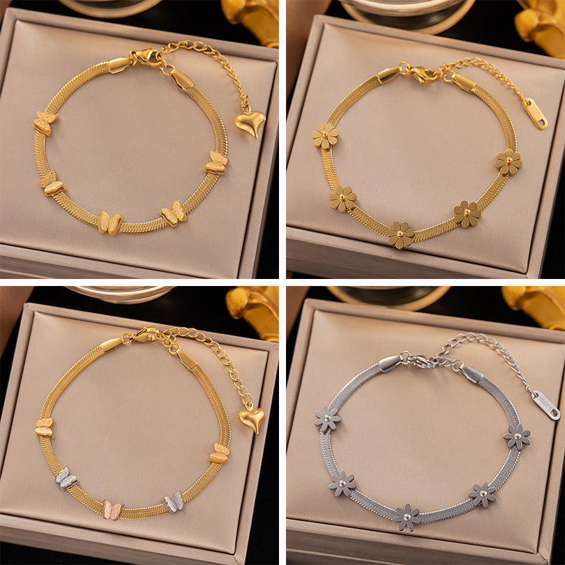 Cadena de ósea de la serpiente de la mariposa de flores al por mayor no brazalete de acero de titanio no desanimado