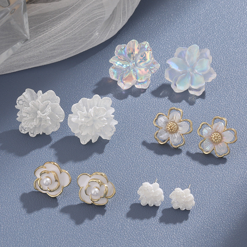 Wholesale Flower Drop Oil Pearl Colorful Petal Earrings