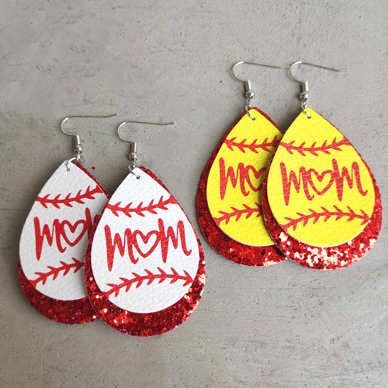 Wholesale Love Letter Mom Baseball Leather Earrings