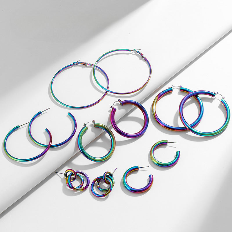 Wholesale Magic Color Electroplating Classic HOOP Retro Earrings