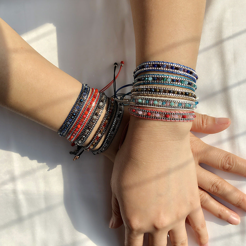 Wholesale Mixed Color Crystal Beads Multi-layer Retro Ethnic Style Bracelet