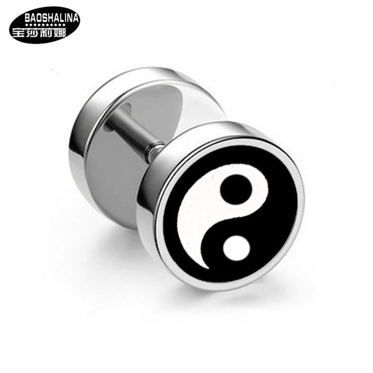 Wholesale Titanium Steel Barbell Fashion Dumbbell Black Street Earrings