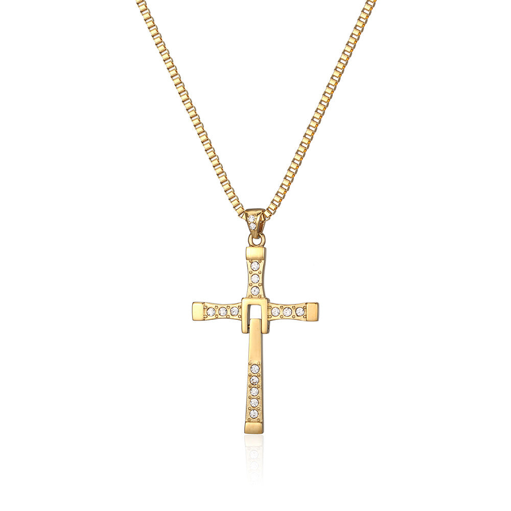 Venta al por mayor Collar con colgante de diamante cruzado de acero de titanio