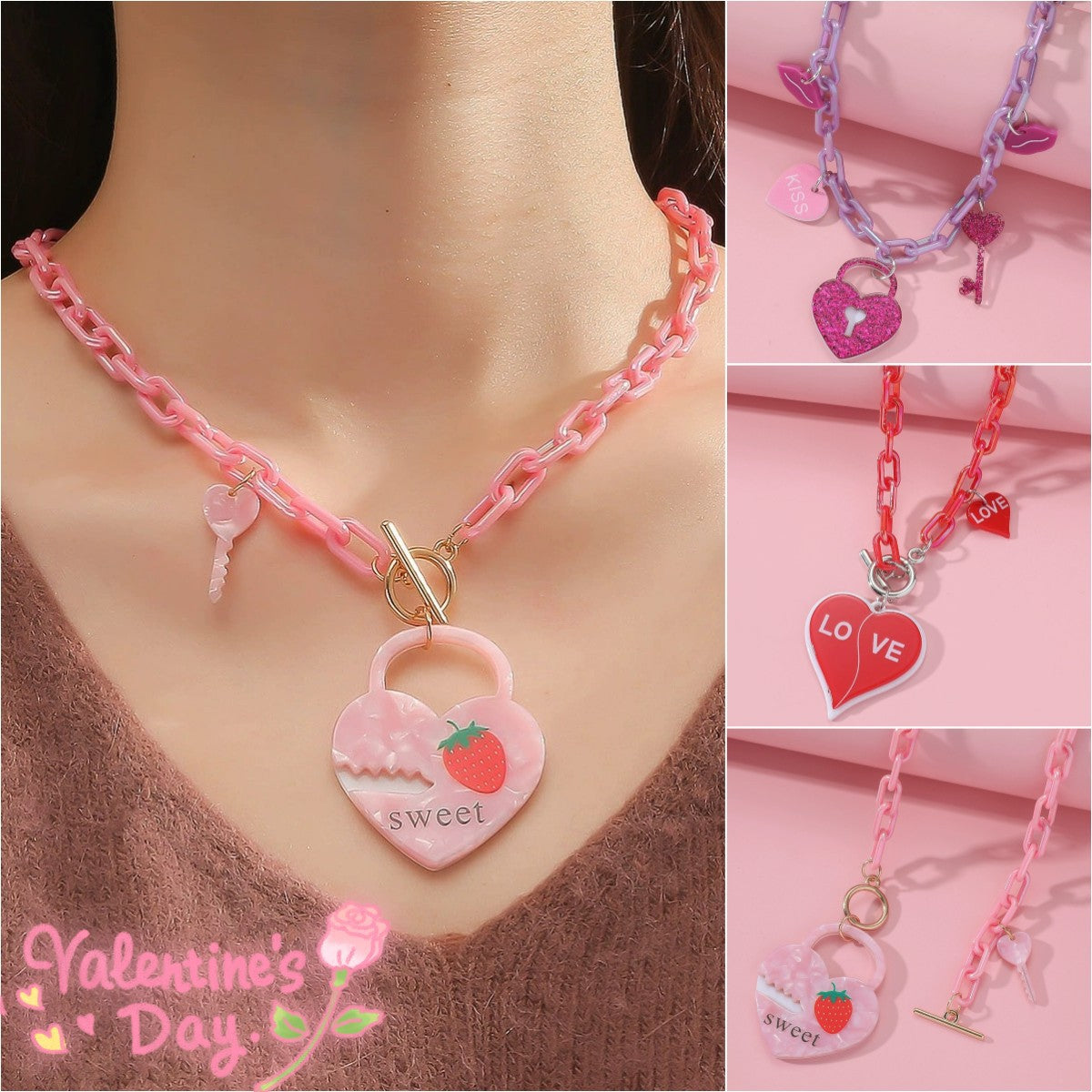 Wholesale Valentine's Day Acrylic Peach Heart Clavicle Chain