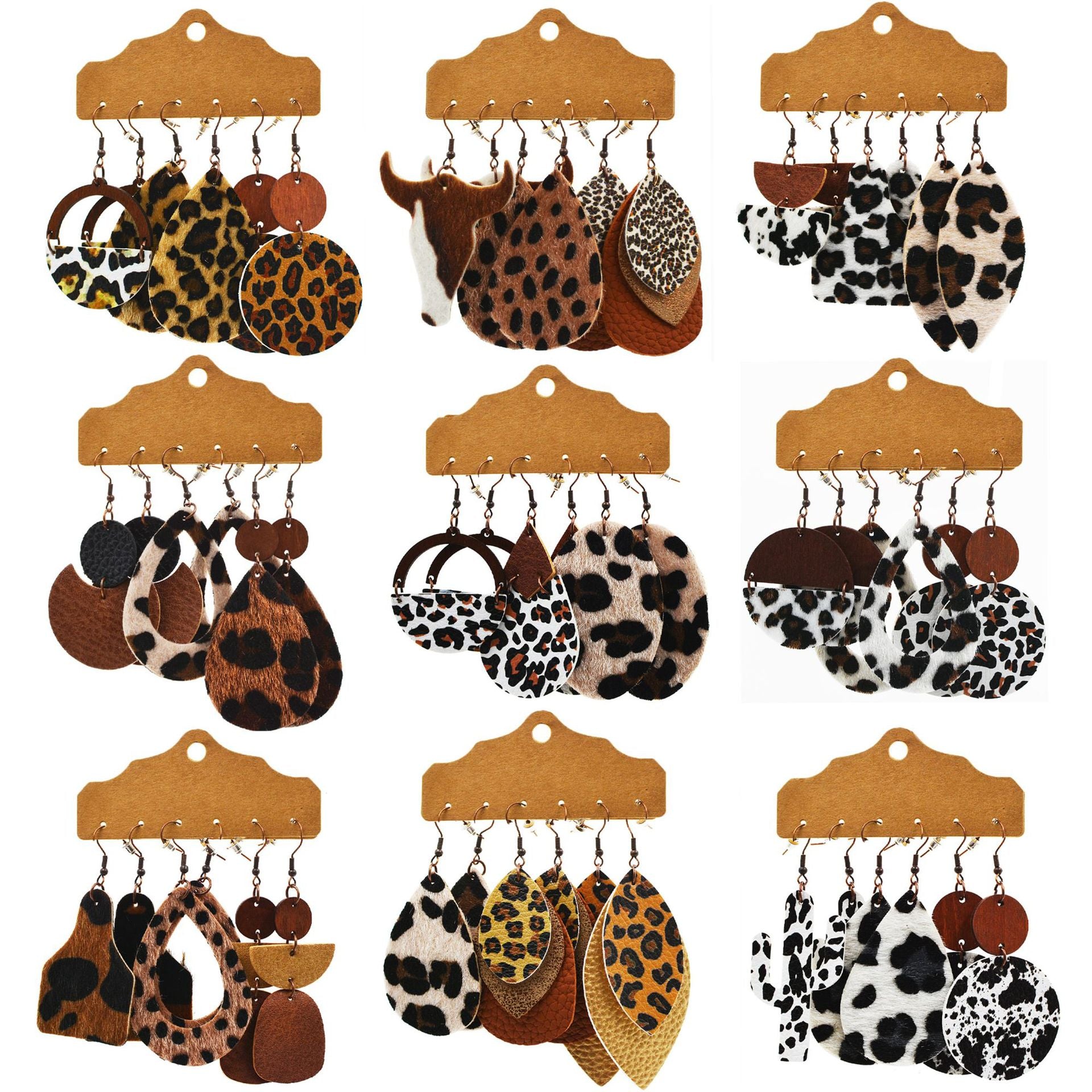 Wholesale Western Style Leopard Print Cow Earrings