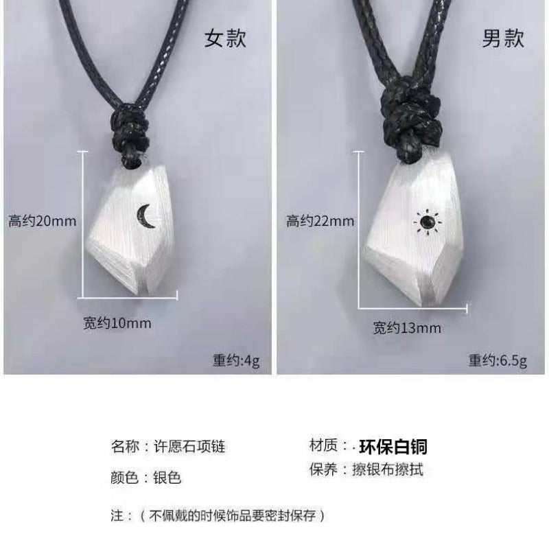 Wholesale Wishing Stone Couples One Pair Simple Fashion Copper Silver Plated Sun and Moon Pendant Pull-out Rope Clavicle Necklaces