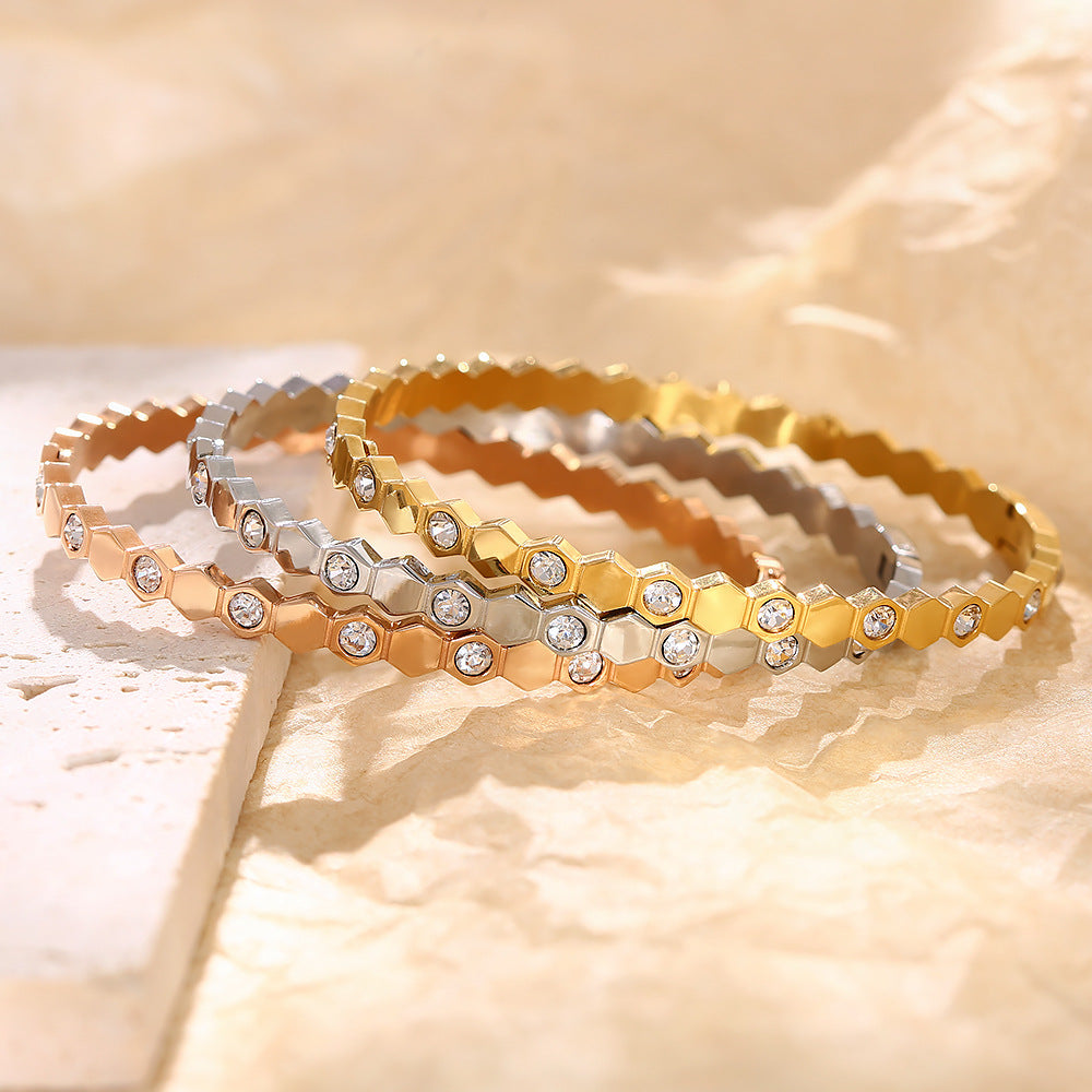 Wholesale Zircon Hexagonal Honeycomb Titanium Steel Bracelet