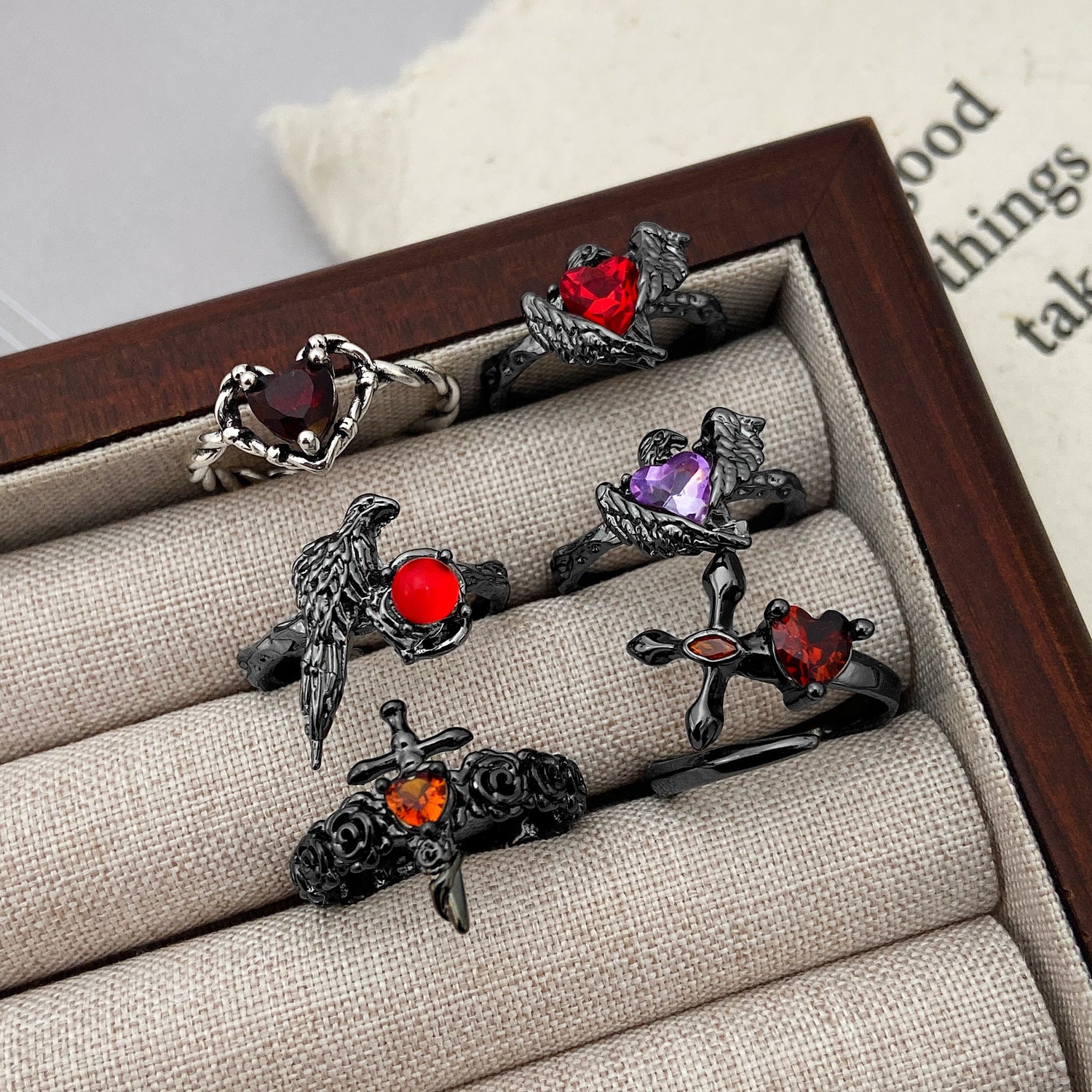 Wholesale Men's Red Gemstone Punk Ring