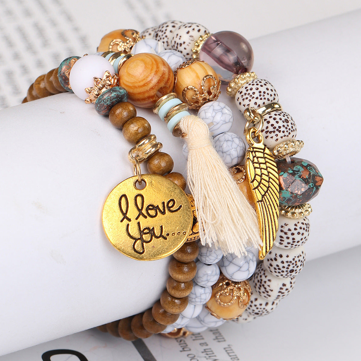 Wholesale Wing Wood Bead Tassel Elastic Bracelet