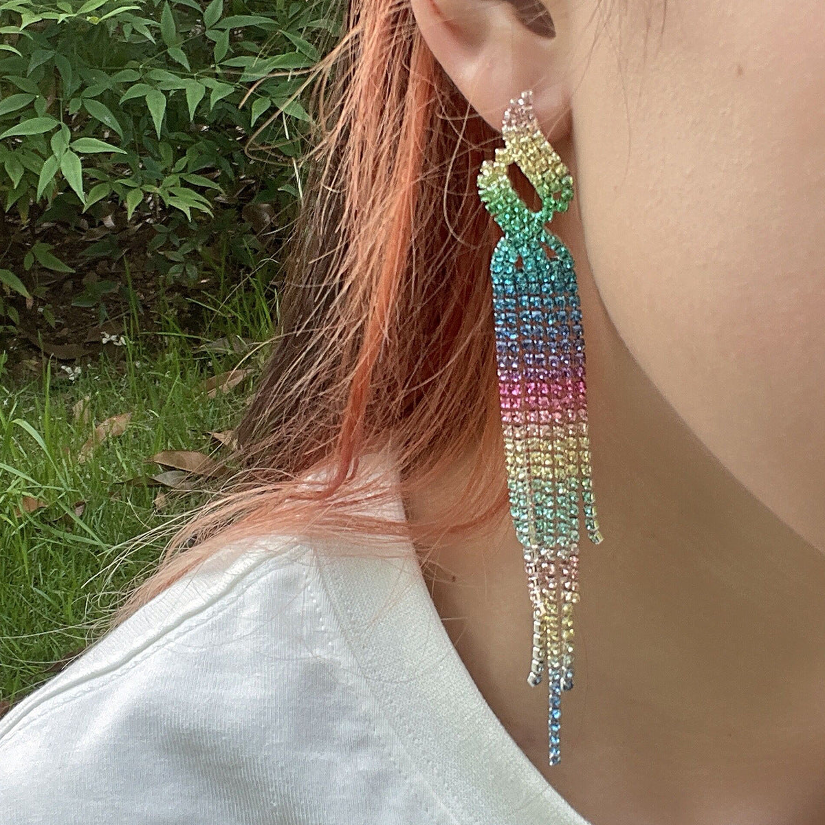 Wholesale Colorful Super Sparkling Rhinestone Long Tassel Earrings