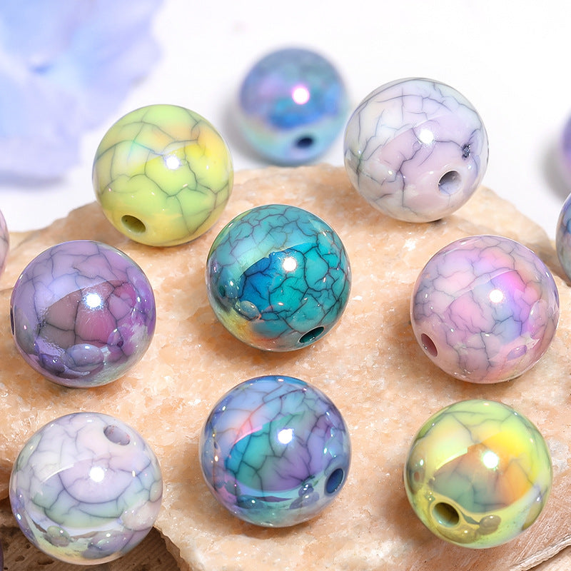 Wholesale 50pcs Acrylic UV-plated imitation marble crack beads