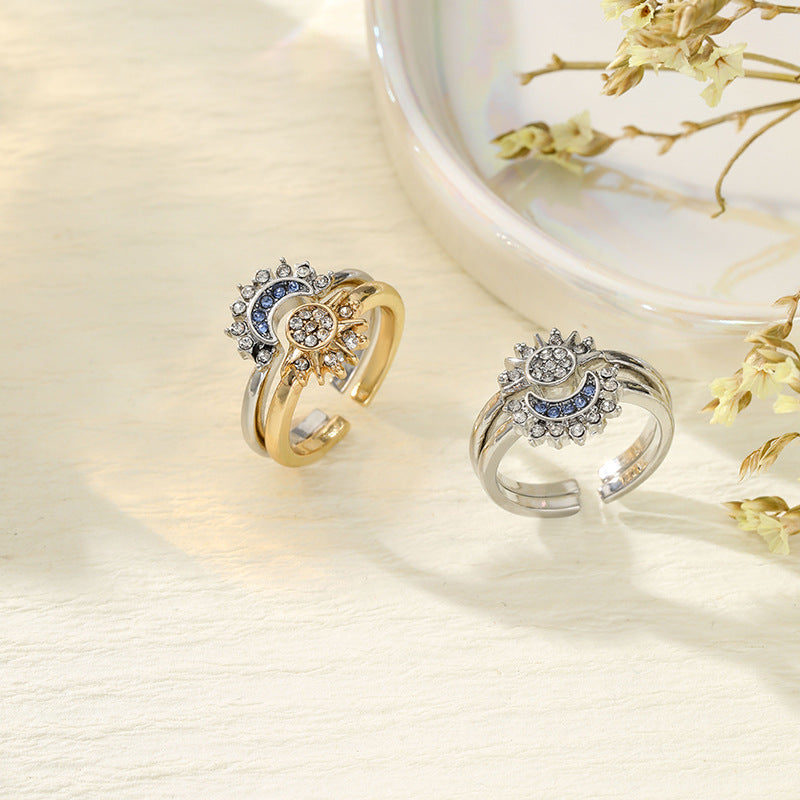 Wholesale Sun and Moon Shine Together, Stacked and Personalized, Simple Design, Diamond-set Sun and Moon Couple Rings