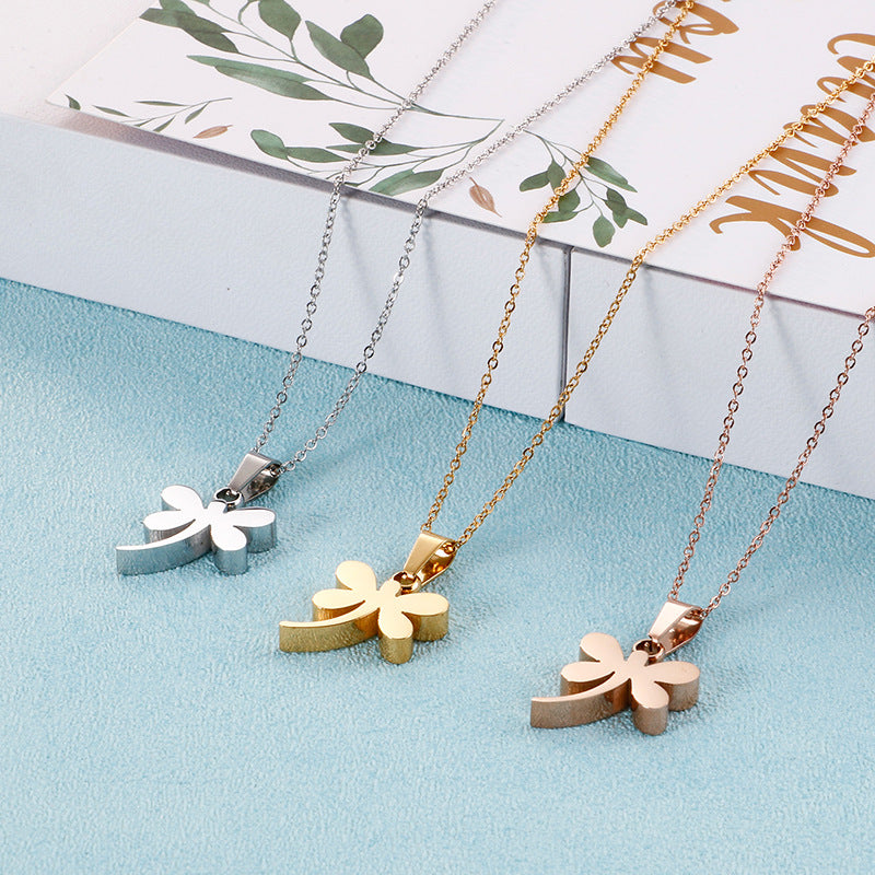 Wholesale Titanium Steel Dragonfly Pendant Necklace