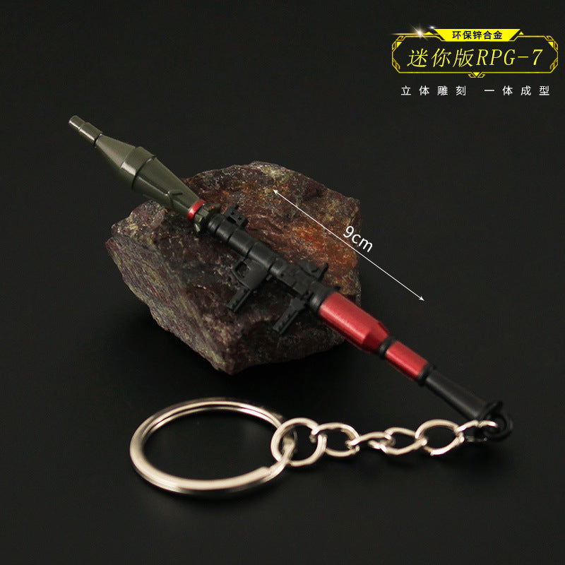 Wholesale metal chicken pendant RPG mini rocket launcher alloy keychain 9cm