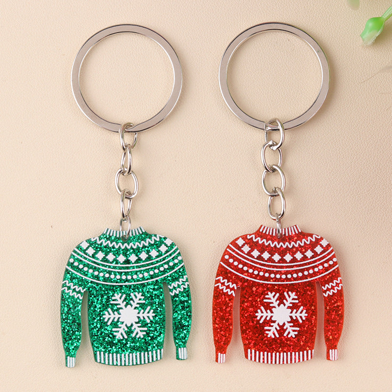 Wholesale Cartoon Design Snowflake Colorful Sweater Acrylic Simple Fashion Christmas Keychains