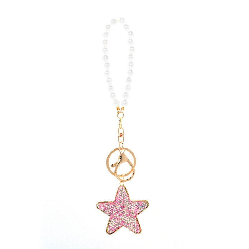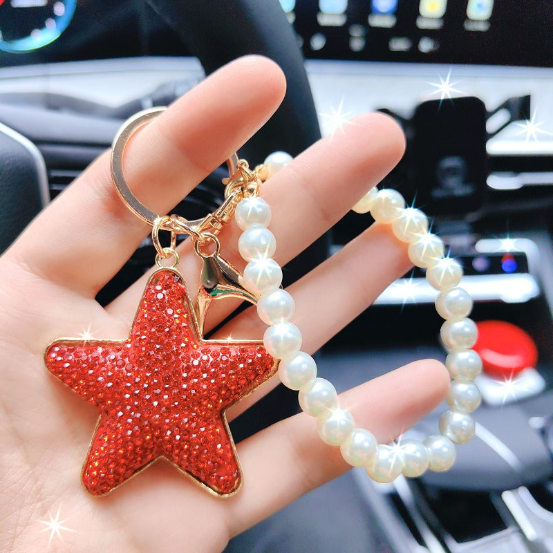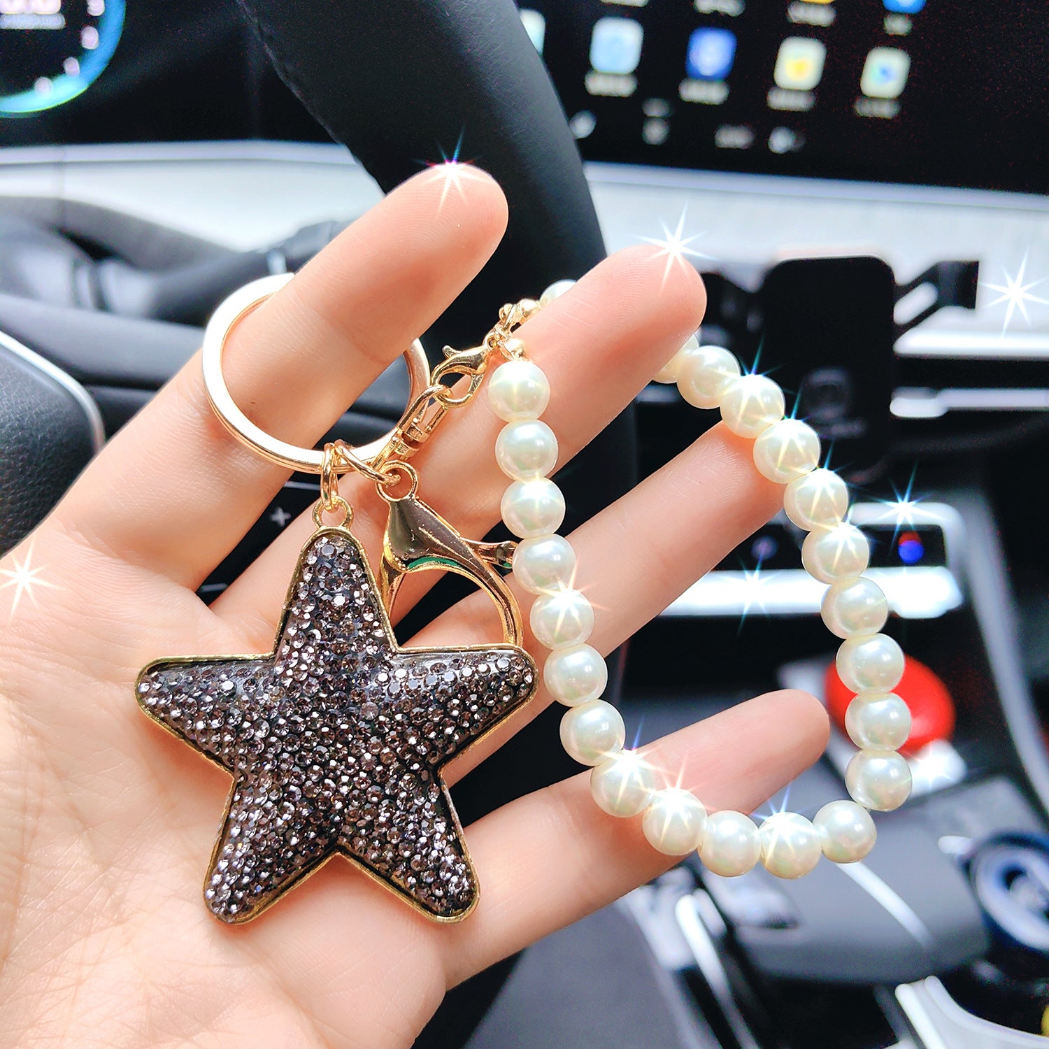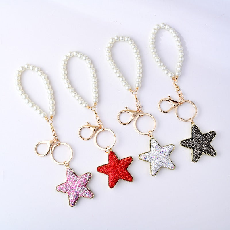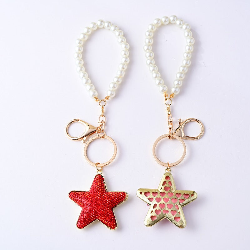 Wholesale Diamond Five-pointed Star Pearl Car Metal Creative Bag Pendant Keychains