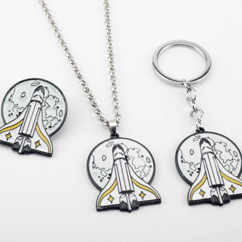 Wholesale Game Peripheral Rocket Spaceship Brooch Badge Keychains