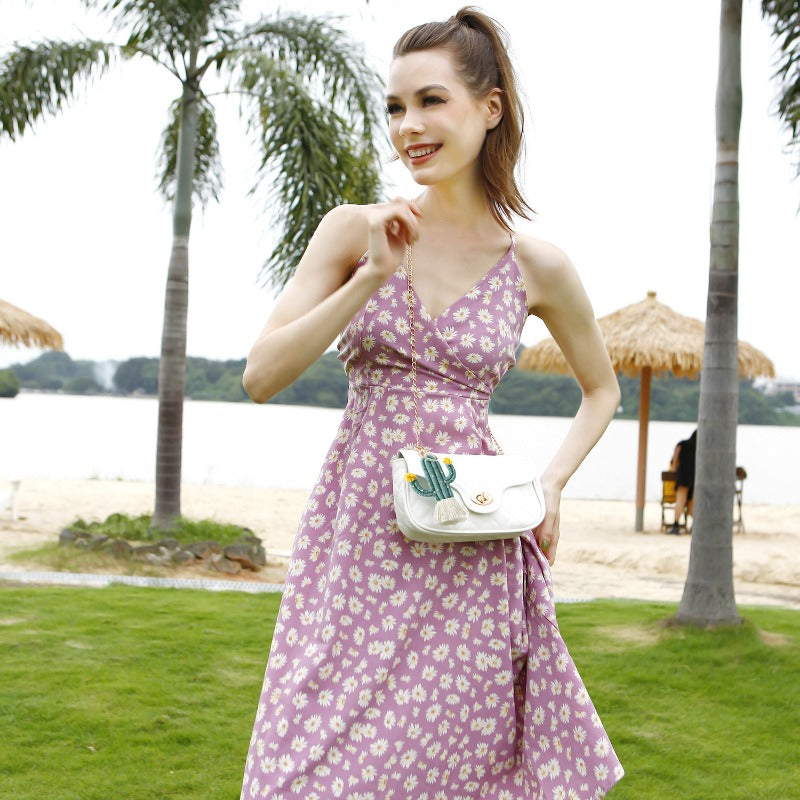 Wholesale Green Plant Cactus Bohemian Rice Bead Handmade High Grade Keychains