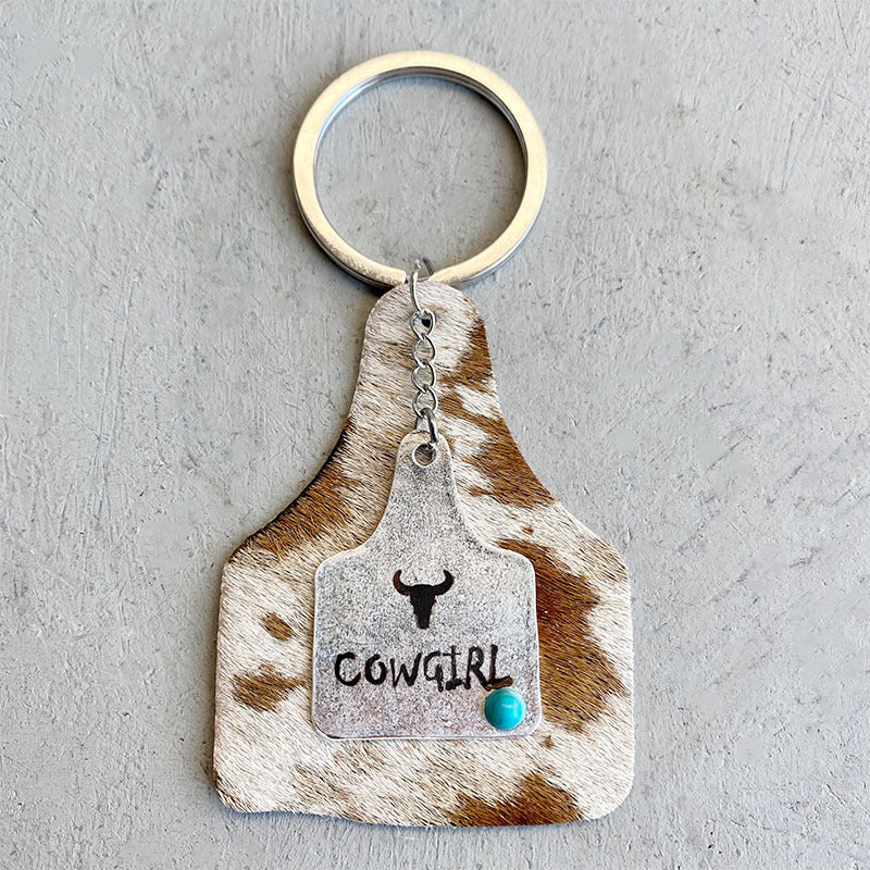 Wholesale Western Turquoise Metal Cow Brand Cactus Horseshoe Bull Head Anti-lost Device Creative West Leather Keychains