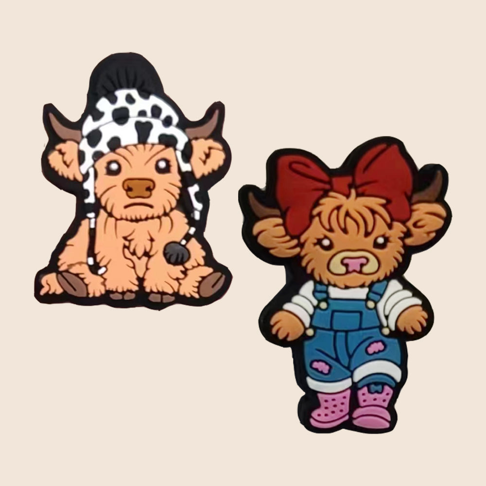 Wholesale 10pcs Western Style Cartoon Cow Pattern Plush Hat Highland Cow Silicone Beads