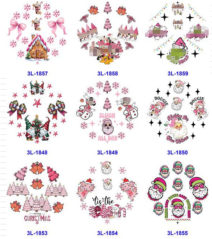 Wholesale 16pcs Pink Cute Christmas 16oz Cup Lid Stickers