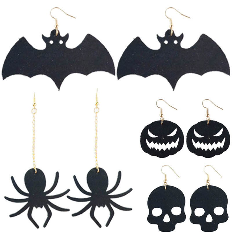 Wholesale 2 Pair/Pack Halloween Skull Spider Earrings