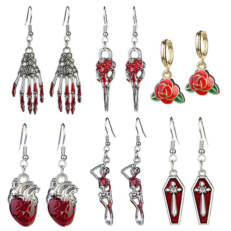 Wholesale 2 Pairs/pack Halloween Horror Blood Skull Skeleton Heart Skull Bird Earrings