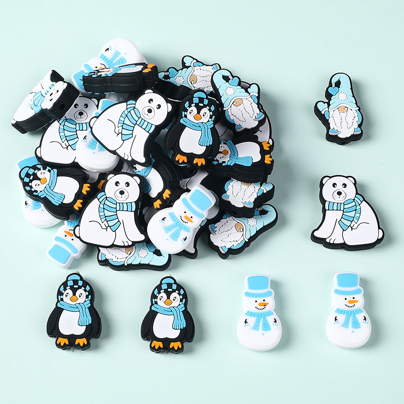 Wholesale 20pcs Cartoon Winter Penguin Polar Bear Pattern Silicone Beads