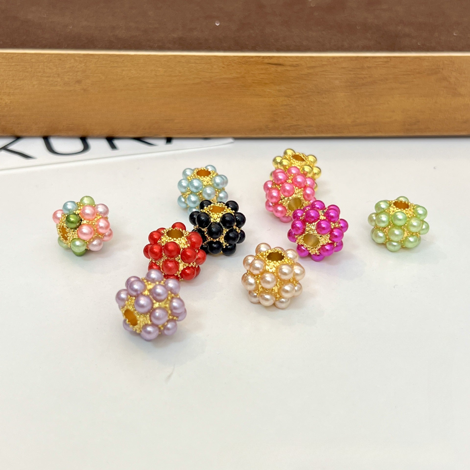 Wholesale 5PCS Alloy Imitation Pearl Balls with Straight Holes and Colored String Beads