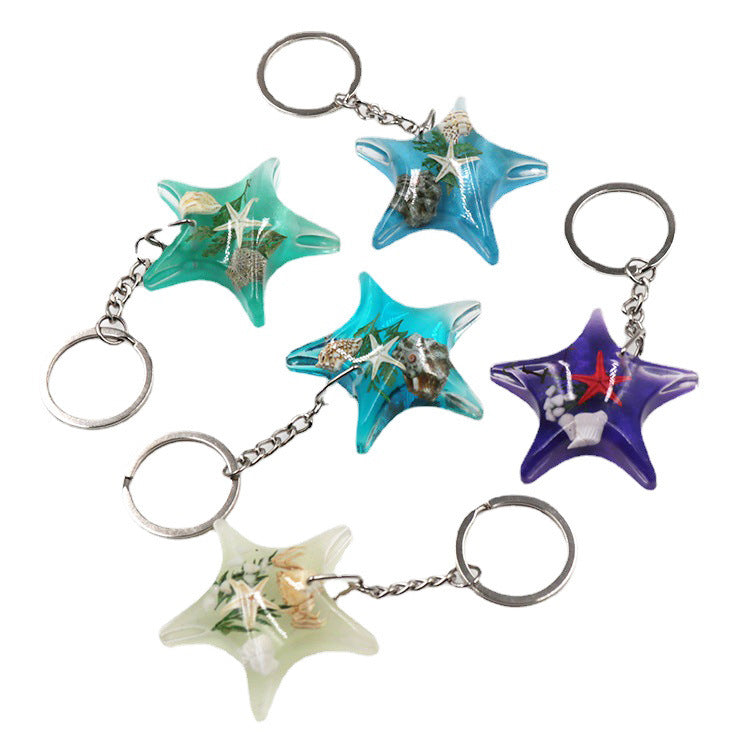 Wholesale 6pcs Creative Resin Glue Starfish Keychain